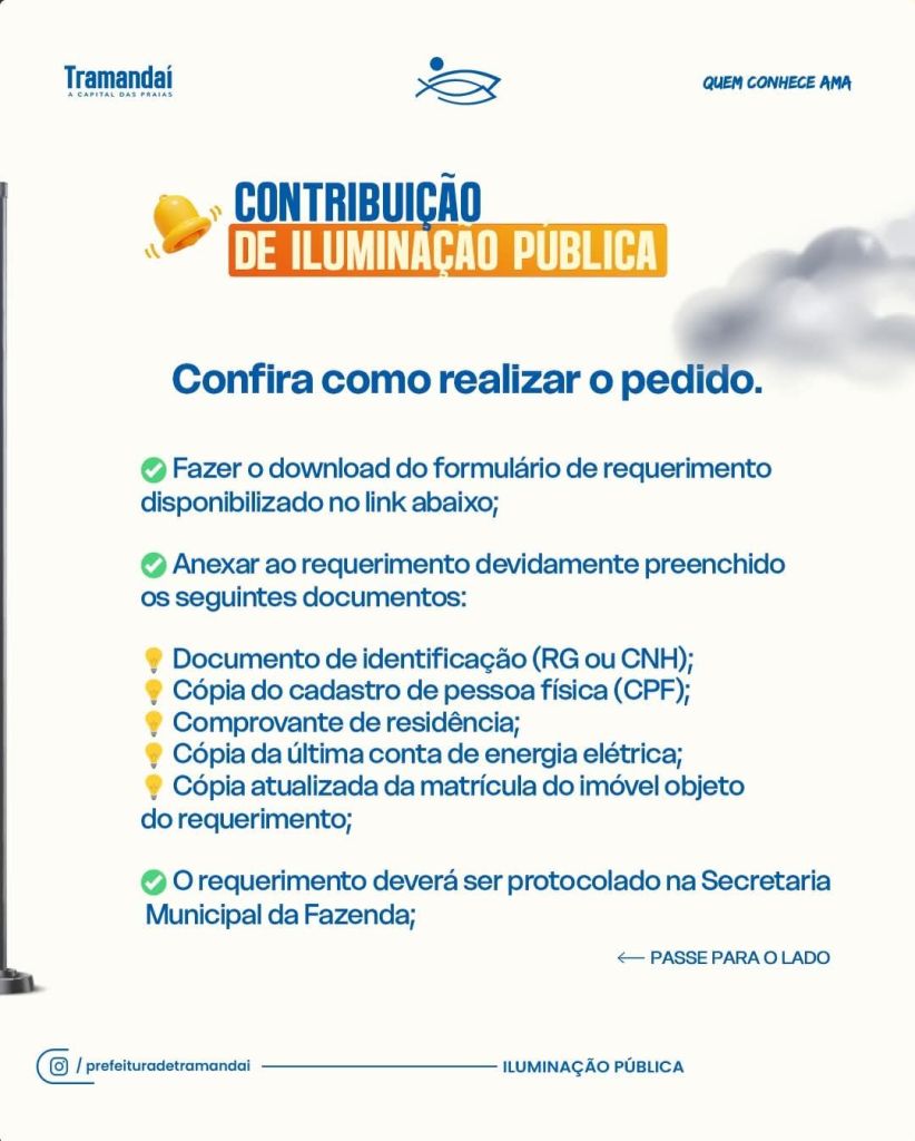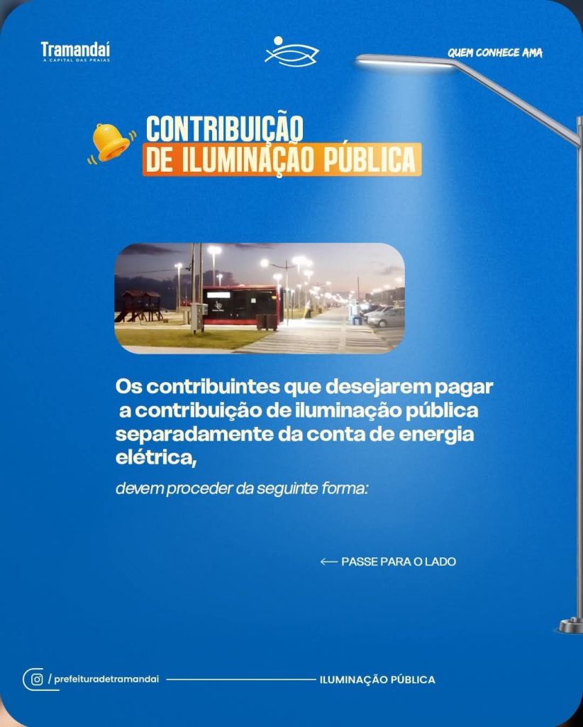 Os contribuintes que desejarem pagar a contribuição de iluminação pública separadamente da conta de energia elétrica, devem proceder da seguinte forma: