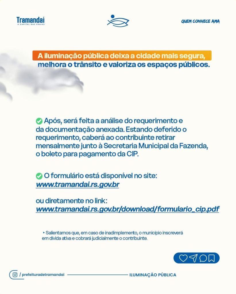 O formulário está disponível no site http://www.tramandai.rs.gov.br ou diretamente no link: http://www.tramandai.rs.gov.br/download/formulario_cip.pdf